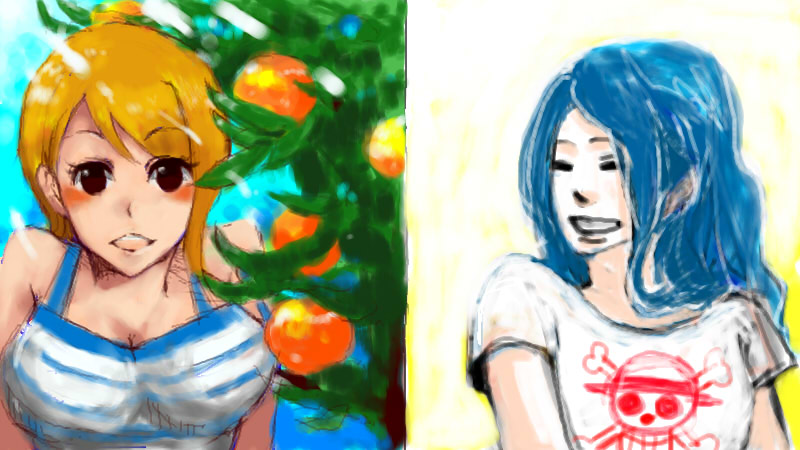 こっそり私のナミさんがいたりします。中学生のころは実はよく描いてました、ナミさん。